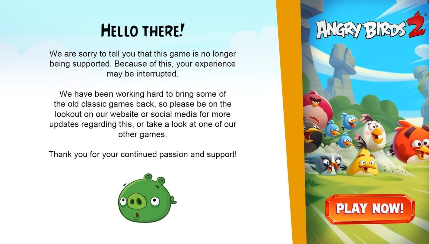 Angry Birds Facts On Twitter Fact 2134 Some Of The Classic Angry Birds Games Now Have Messages That Pop Up Informing You That The Game Is Discontinued And That They Re Working